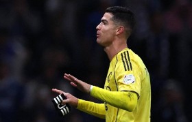 当C罗在利雅得胜利的训练场上接受采访时,...